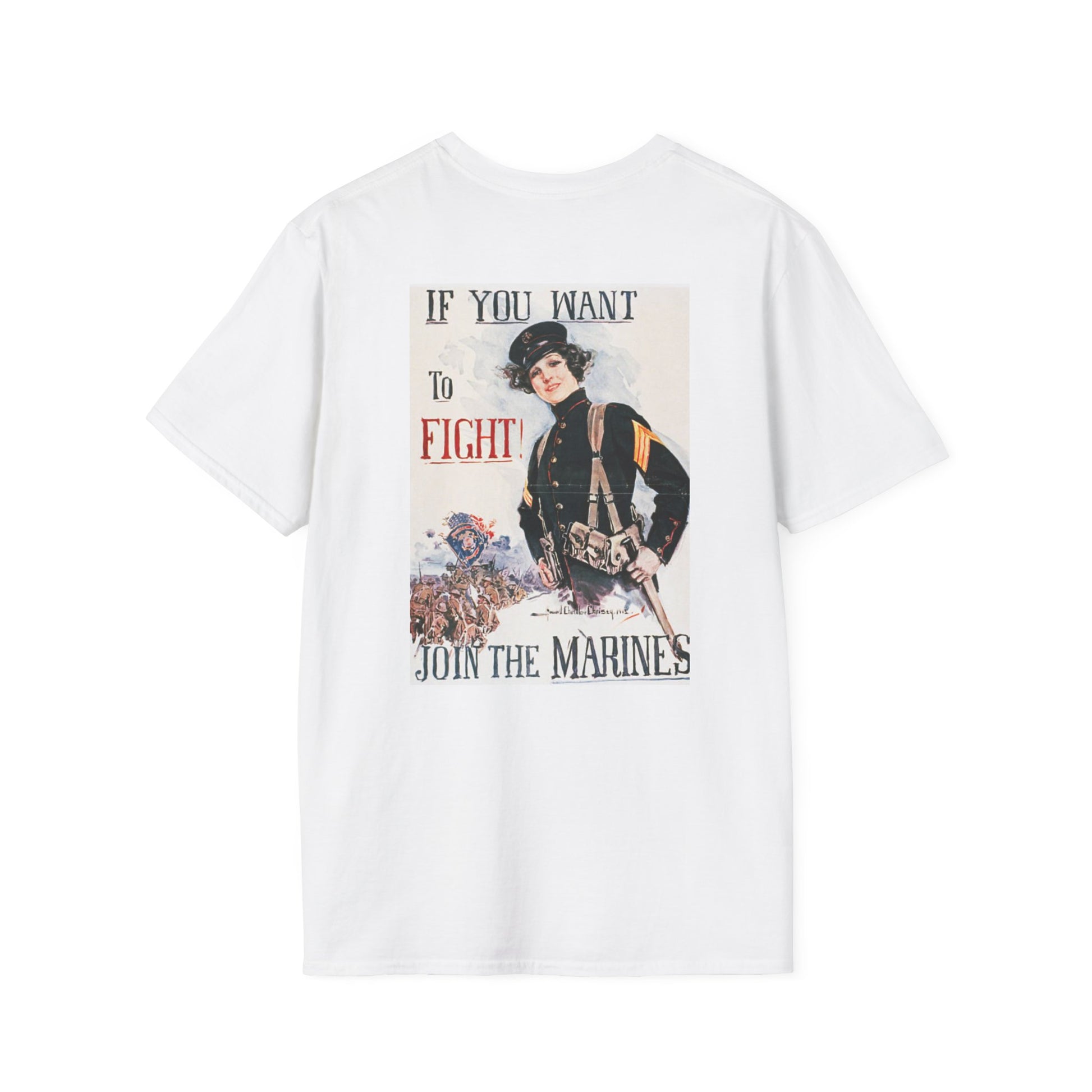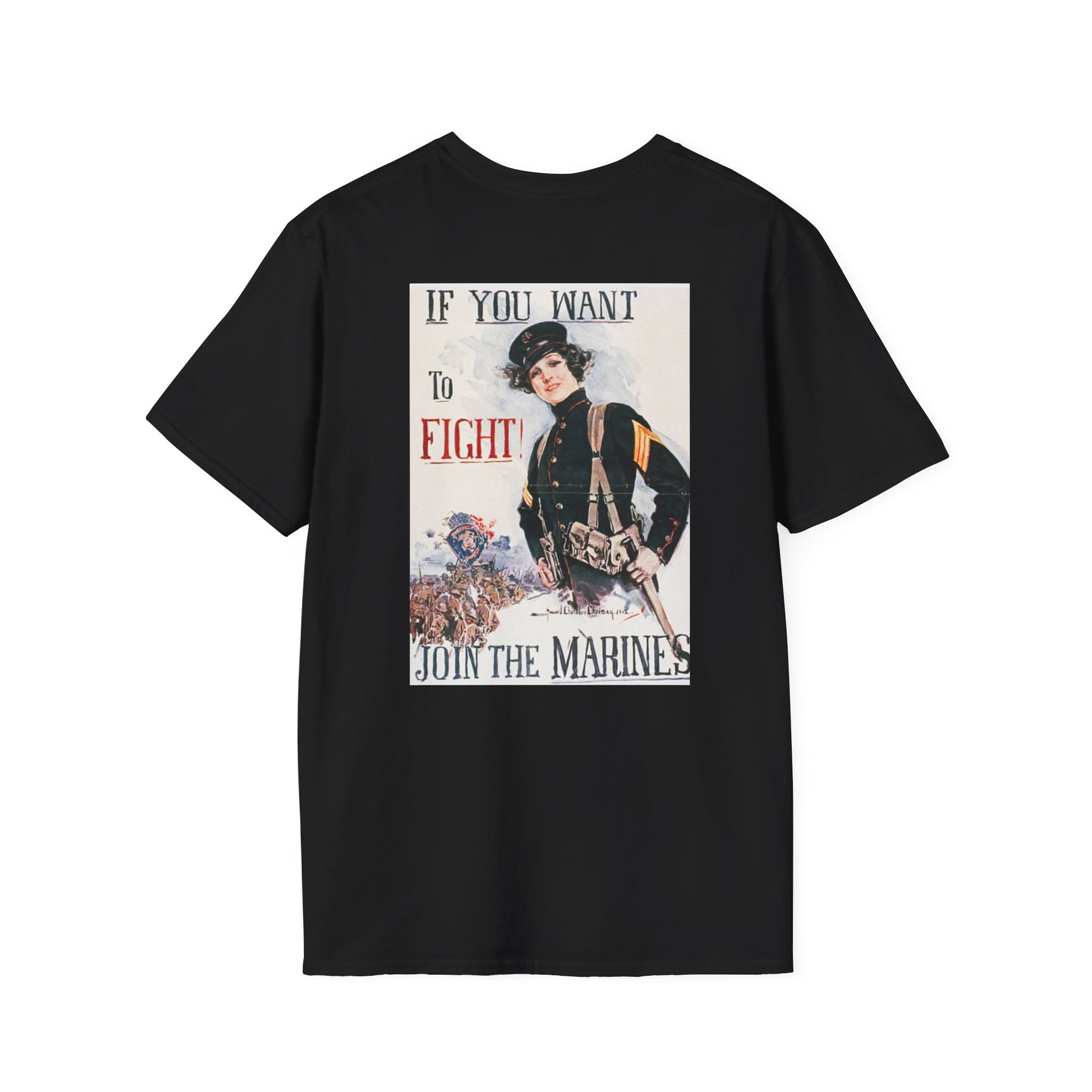 The back features a vintage USMC recruiting poster pulled from another era of service. The front is kept minimal with the 1st Marine Division insignia. No slogans. No reinterpretation. Just history and intent.