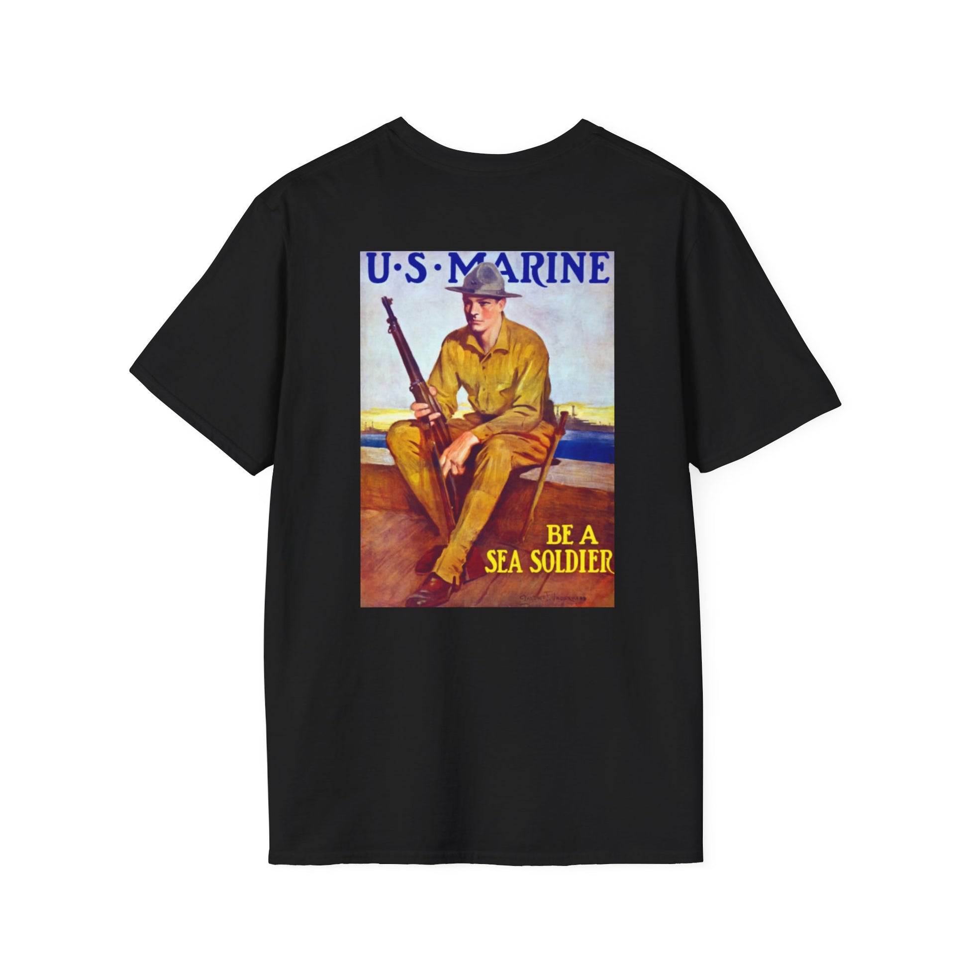 The back features a vintage USMC recruiting poster pulled from another era of service. The front is kept minimal with the 2nd Marine Division insignia. No slogans. No reinterpretation. Just history and intent.