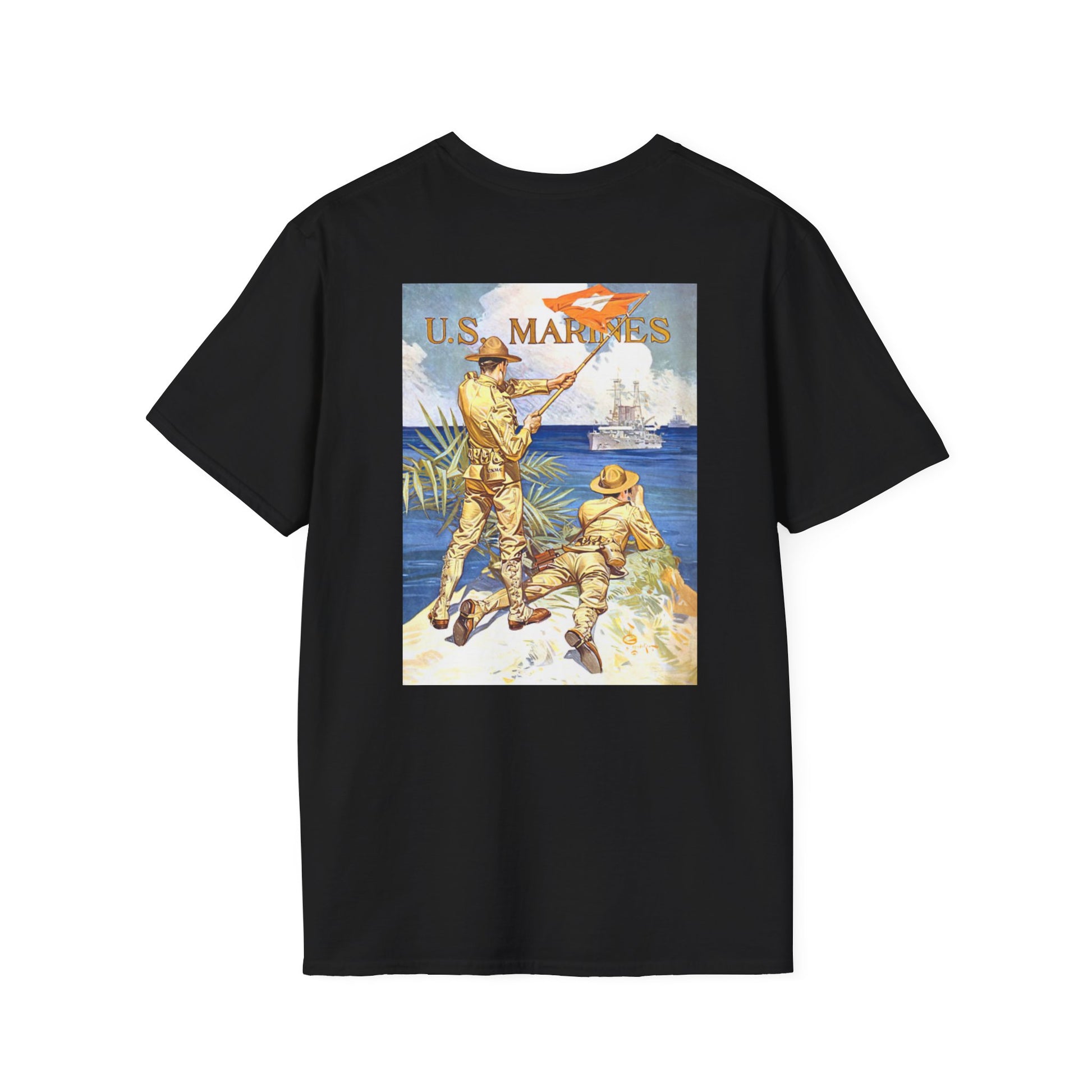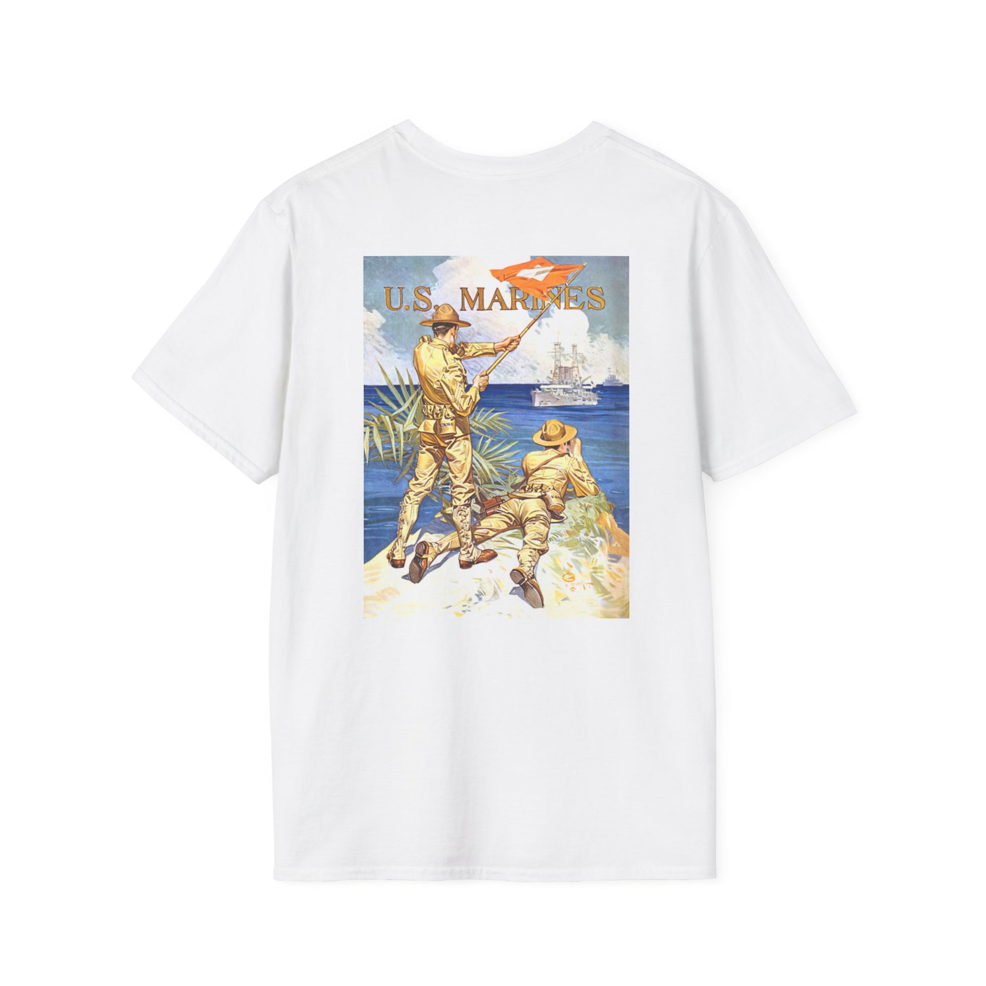 The back features a vintage USMC recruiting poster pulled from another era of service. The front is kept minimal with the 2nd Marine Division insignia. No slogans. No reinterpretation. Just history and intent.
