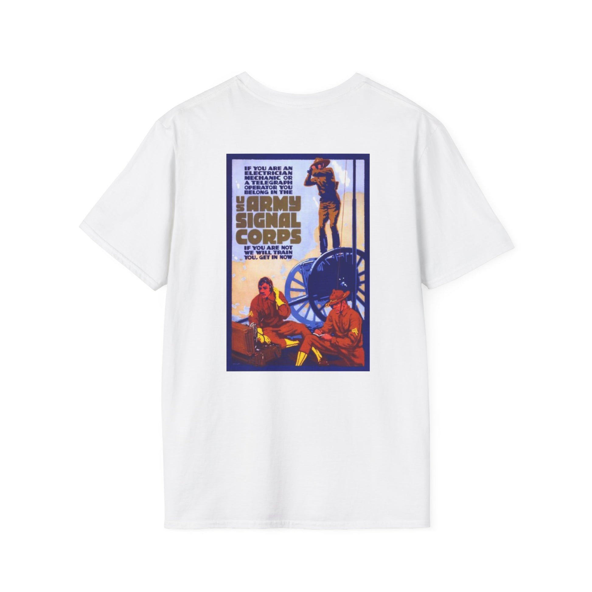 The back features a vintage Army recruiting poster pulled from another era of service. The front is kept minimal with the Department of the Army insignia. No slogans. No reinterpretation. Just history and intent.